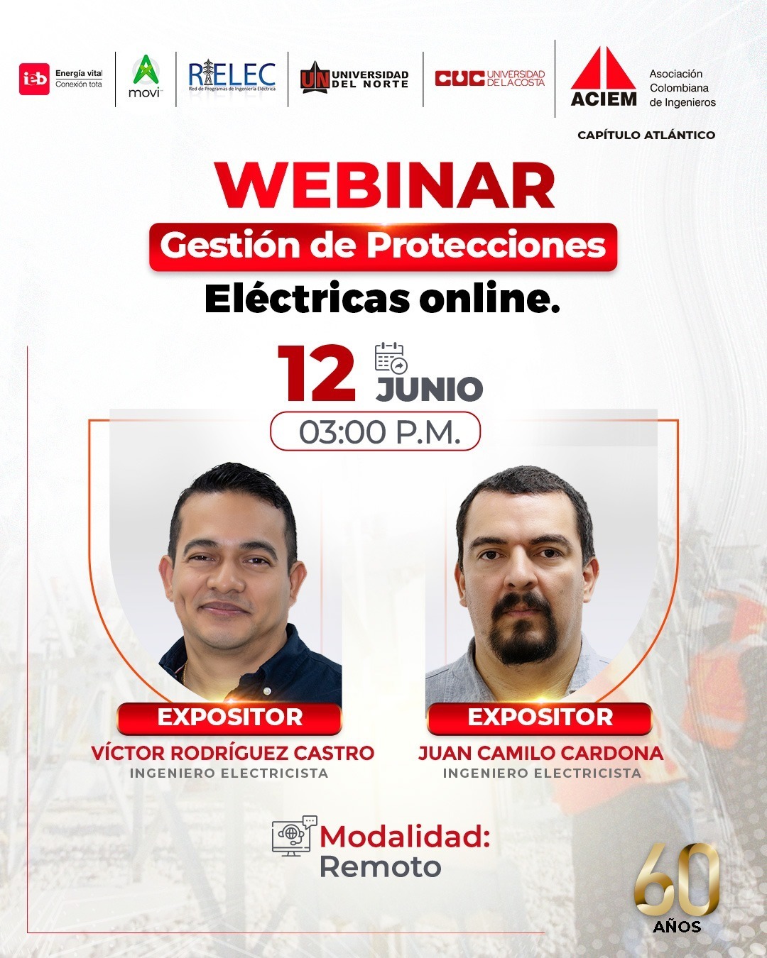 Ingeniero Electricista egresado de la Universidad del Norte, Especialista en Gestión Eficiente de la Energía, Gerencia de Proyectos MSc. en Fuentes Renovables de Energía, Administración Energética, Certified Energy Manager (CEM) de la Asociación Norteamericana de Ingenieros en Energía (AEE)