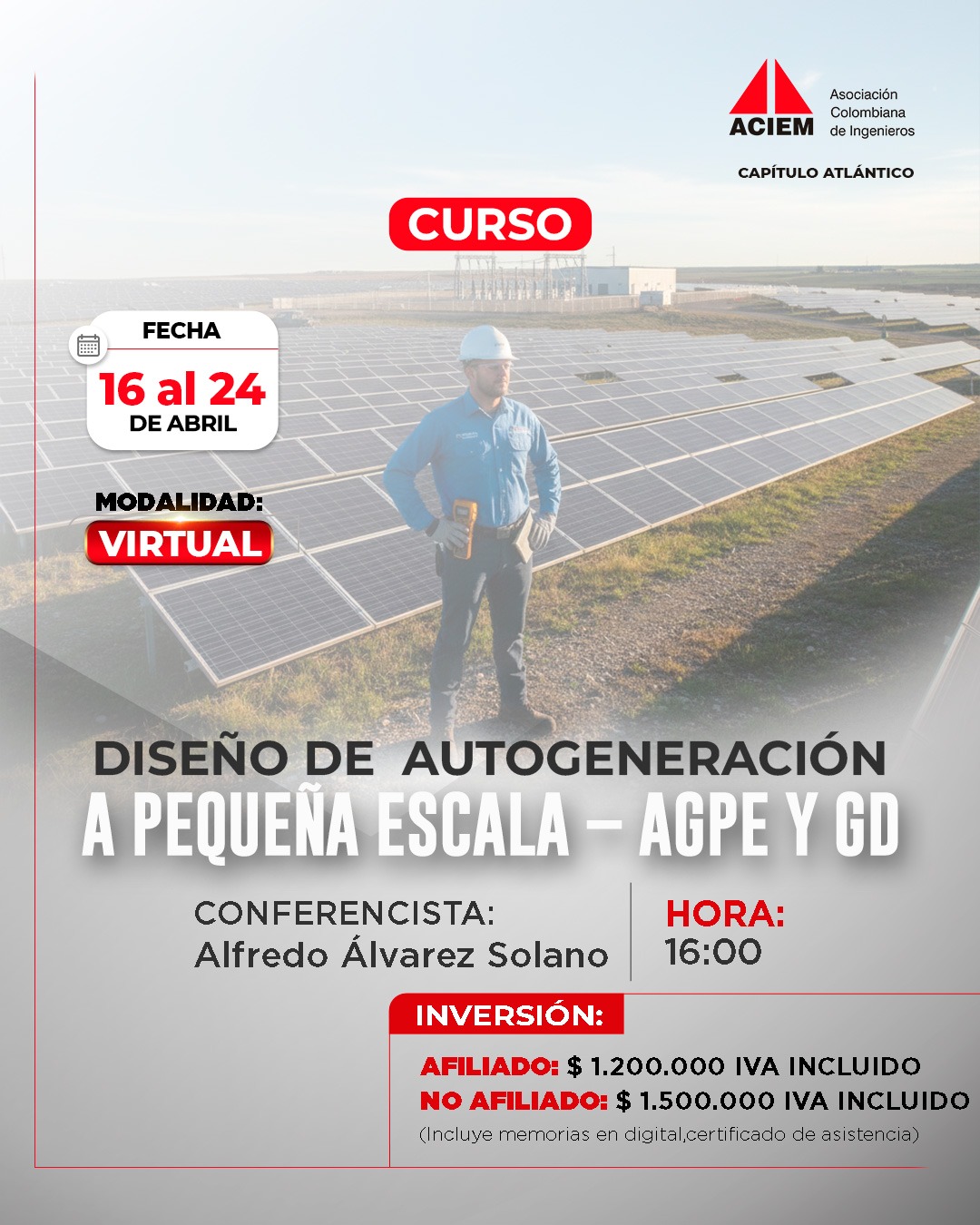Ingeniero Electricista egresado de la Universidad del Norte, Especialista en Gestión Eficiente de la Energía, Gerencia de Proyectos MSc. en Fuentes Renovables de Energía, Administración Energética, Certified Energy Manager (CEM) de la Asociación Norteamericana de Ingenieros en Energía (AEE)